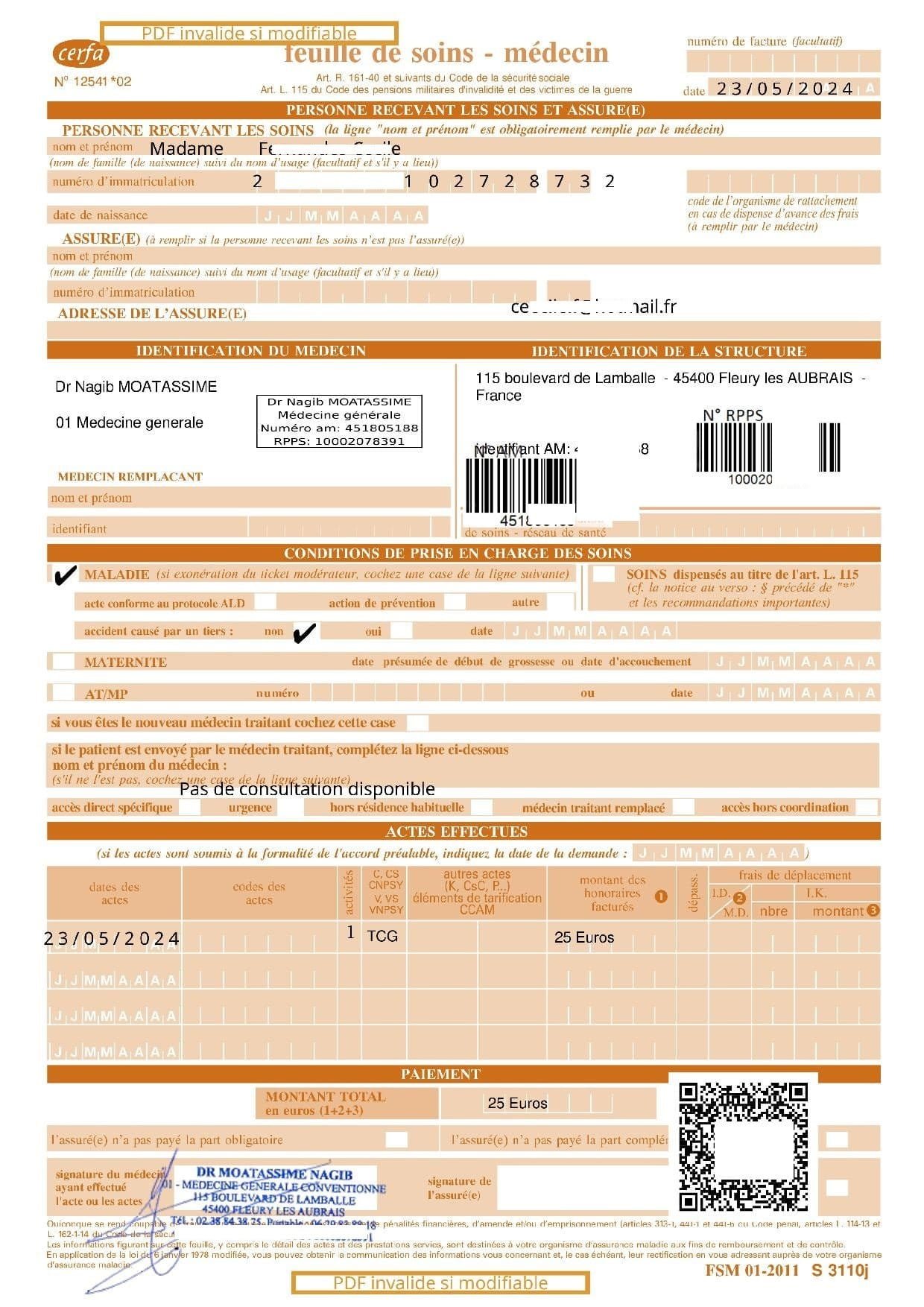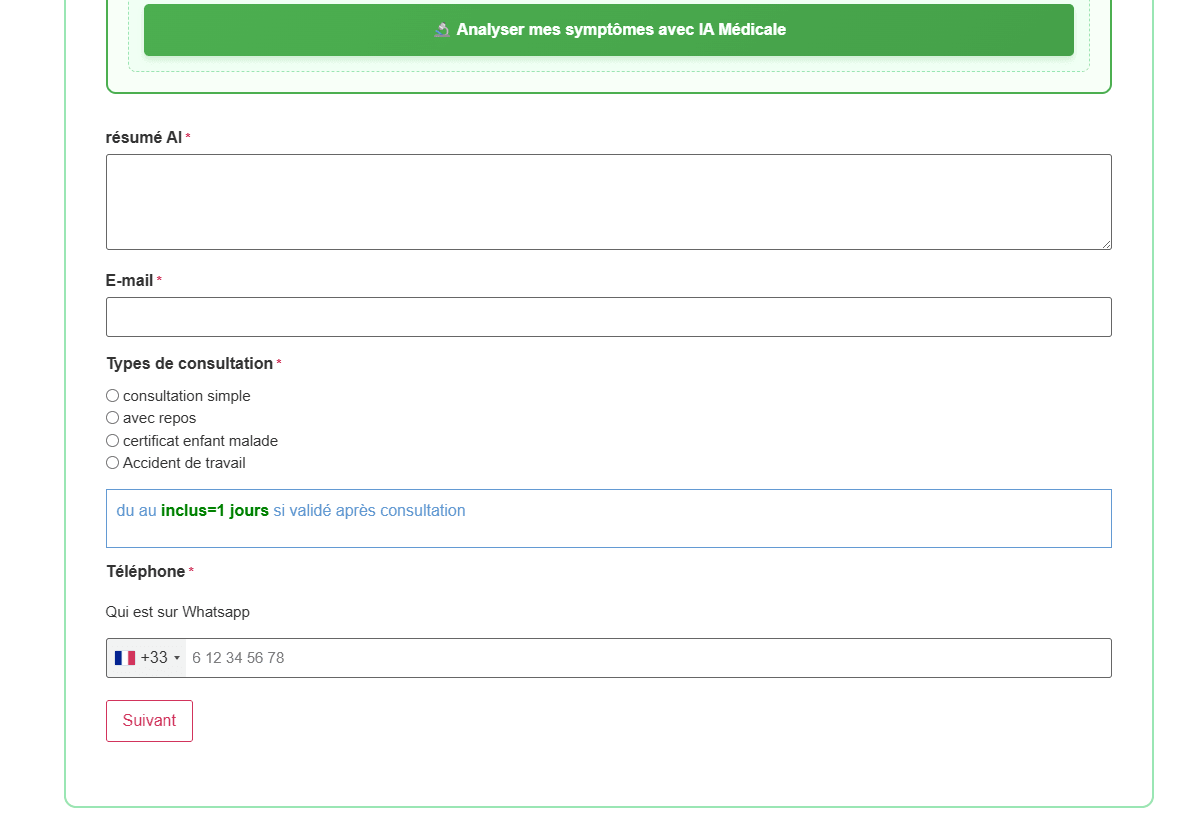 Remplir peu d' informations de contact (Nom, e-mail, numéro de téléphone sécu si tiers payant et FS/arrêt maladie ).