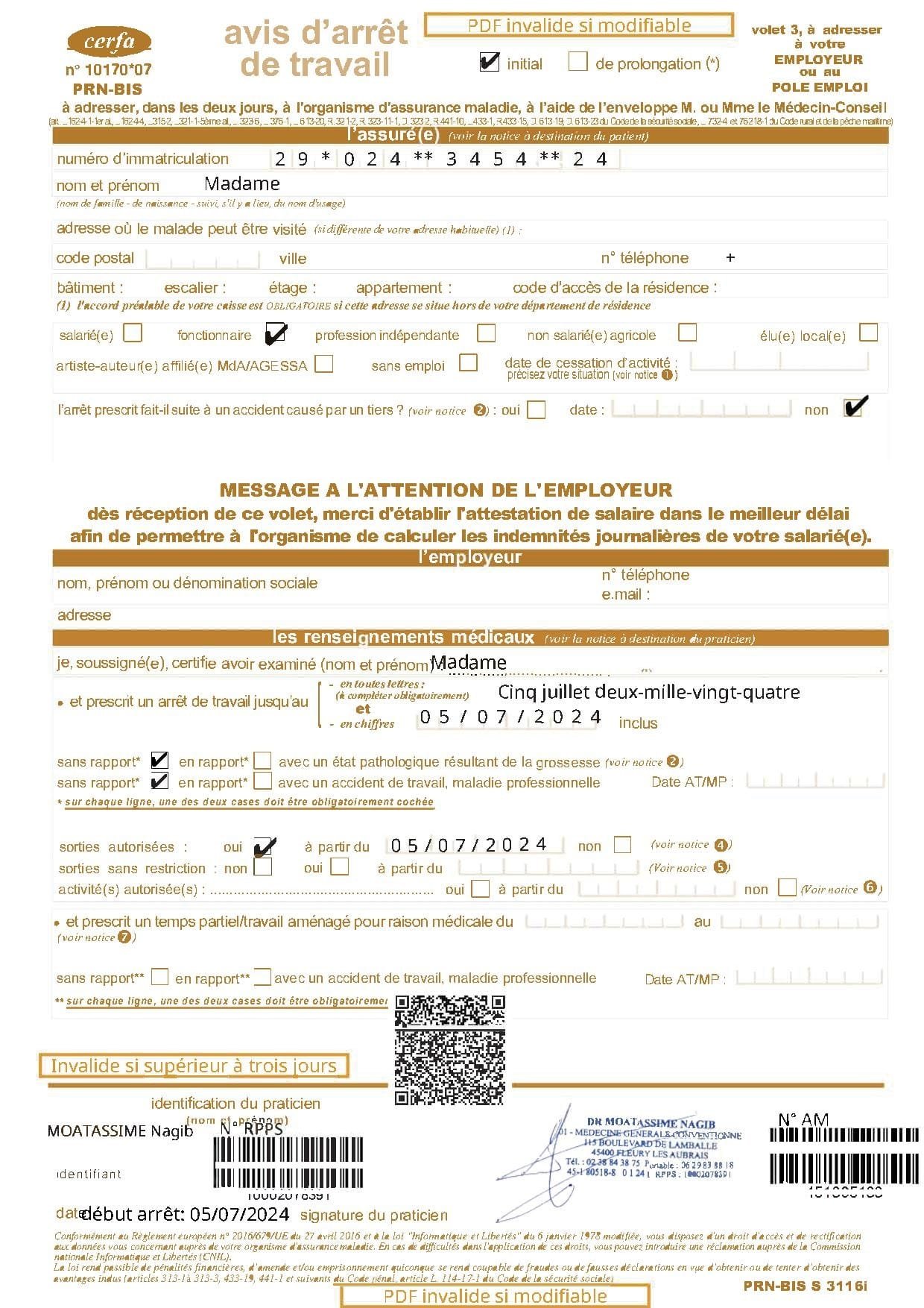 Si votre état de santé nécessite un arrêt de travail, le médecin généraliste peut vous délivrer un arrêt de travail « électronique », à transmettre à votre employeur et à la Sécurité Sociale.