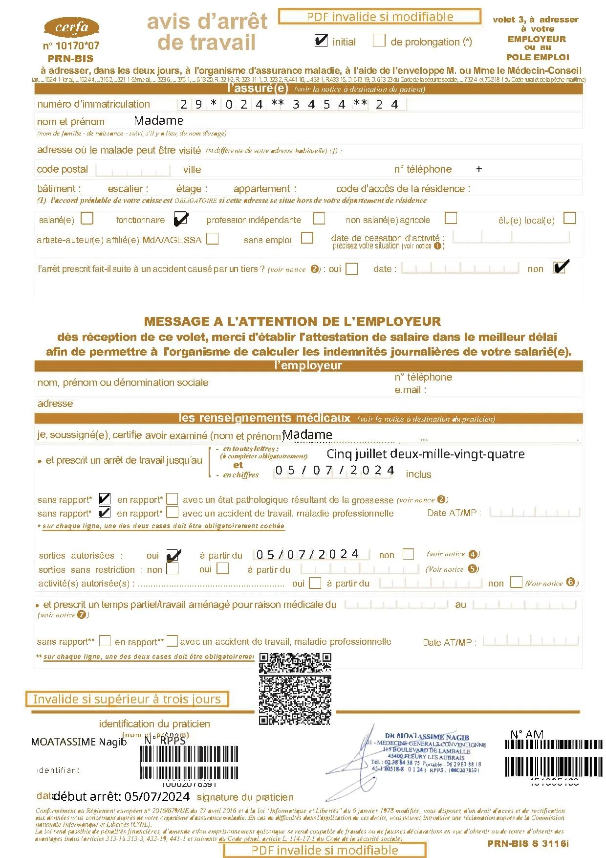 Si votre état de santé nécessite un arrêt de travail, le médecin généraliste peut vous délivrer un arrêt électronique pendant la téléconsultation (Moins de 3 jours). Ce document est légalement valable et peut être directement envoyé à votre employeur et à l’Assurance Maladie.